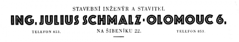 Sídlo stavební firmy Ing. Julius Schmalz. Firma spolupracovala na stavbě krematoria v Olomouci-Neředíně (postavila kremační pece) nebo na výstavbě čs. předválečného lehkého opevnění na severní Moravě.